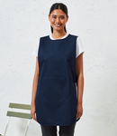 65% polyester/35% cotton twill. Easy care fabric. Large patch pocket. Adjustable stud side tabs. Self colour bound edges. Length 78cm. Industrial laundry 85°C. Domestic wash 60°C.