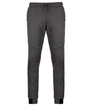 79% polyester/15% viscose/6% elastane. Slim fit.Elasticated waistband with two tone drawcord and plastic tips.Two side jersey lined pockets.Rear zip pocket.Knee patches.Elasticated leg ends.