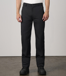 65% polyester/35% cotton. Traditional waistband with belt loops. Concealed zip fly with button over. Two side swing pockets. Rear open pocket.