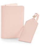 100% leather-look PU. Saffiano fine grain.Soft touch lining.Internal foam padding.Luggage tag with high shine gold metal buckle.Passport/travel card holder.Tear out labels.