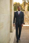 3 button front, single breasted, centre vent, 3 inside pockets.