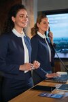 Tailored fit, colarless styling with curved splits, 2 internal jett pockets, curved front/back seams