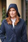 5 button fly front with zip, showerproof, centre vent, 2 outer welt pockets, quilted lining with 2 internal pockets, collar incorporating concealed hood, cuff with tab detail, front princess seams.