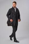 5 button fly front with zip, showerproof, centre vent, 2 outer welt pockets, quilted lining with 2 internal pockets, collar incorporating concealed hood, cuff with tab detail