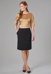A-line skirt with centre back vent, slanted side pockets, twin buttons on waistband