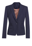 Short, slim fit, 1 button jacket, peaked lapel, 2 flap and 2 jetted pockets, plain back, tailored back panels, 1 inside pocket.