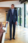 Single breasted slim fit jacket, shorter length, 2 button front, side vents, ticket pocket, slim lapels with saddle stitching, piano faced interior with slim pocket jets.